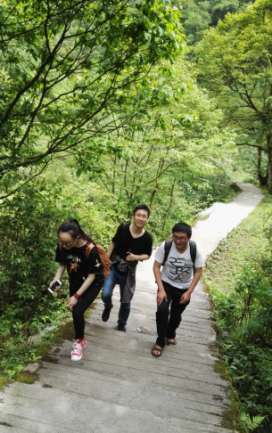 伴著明媚的陽光我們開啟了登山之旅,1700米的高度并沒有讓我們卻步,登山路上雖是汗流浹背,但卻能夠靜靜欣賞四周的美景,品味自然志趣。一路上綠意盎然,遠處高山層疊,近處流水潺潺,隨著高度的增加,壯觀的瀑布映入眼簾,陽光照耀下,瀑布像鍍上了一層金色光環,美不勝收。汗水打濕了衣服和頭發,腳步也越發沉重,但方法人沒有一個人放棄,大家自發地為自己、為對方加油打氣,再短暫休息后又卯足了勁繼續前進。